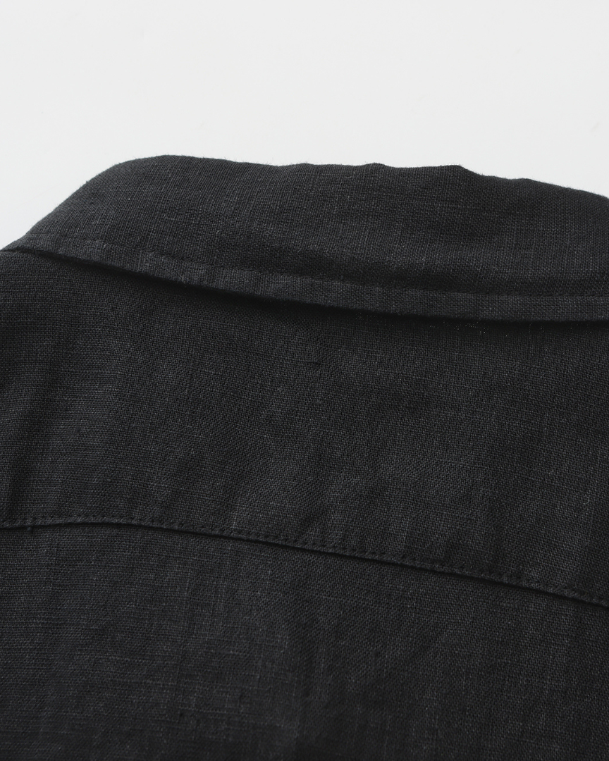 Camisa de Lino - Negra: Confeccionada en lino 100% de alta calidad, esta camisa ligera ofrece comodidad y sofisticación inigualables.