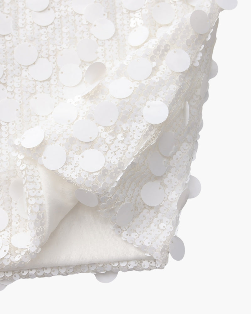 Atrévete a deslumbrar con el Vestido Mini de Fiesta con Lentejuelas, diseñado para las noches que requieren brillo. Cubierto de lentejuelas grandes, este vestido refleja la luz desde todos los ángulos, convirtiéndolo en una prenda realmente llamativa. Su silueta de tipo slip-on con delicados tirantes finos crea un escote favorecedor, mientras que el dobladillo corto aporta un toque divertido y seguro.